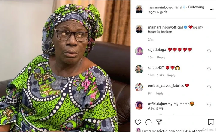 My heart is broken says Veteran actress, Mama Rainbow Laments